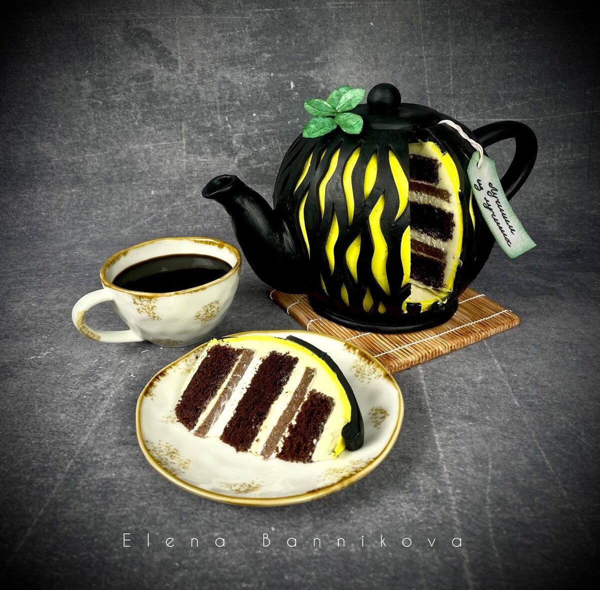 - Создание вау-эффектов: Работа с резным мастичным покрытием. Создание мяты и бирки чайного пакетика. Добавим характера вашему чайнику.